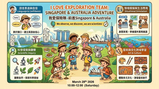 「我愛探險隊-前進Singapore & Australia」帶孩子模擬異國旅遊,透過科學觀察與多元文化藝術,建立自信開口說英語。