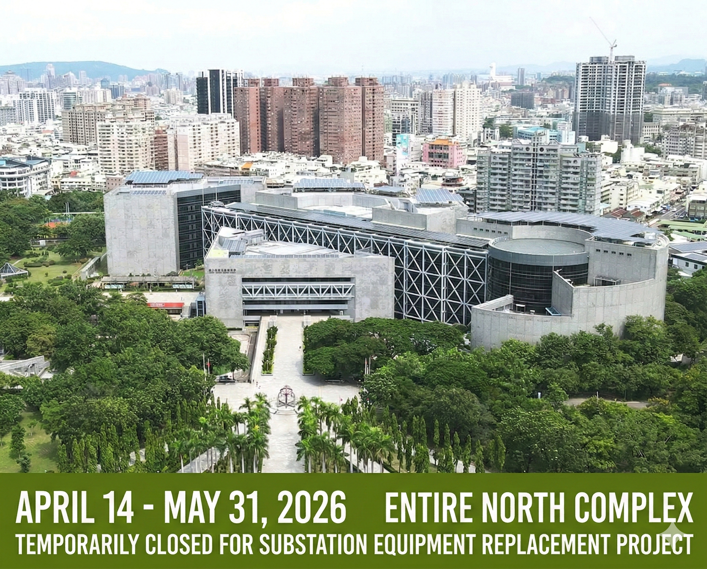 Due to an equipment replacement project at the North Complex substation, the entire North Complex will be closed from April 14 to May 31, 2026. We apologize for any inconvenience this may cause and appreciate your understanding.